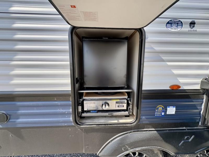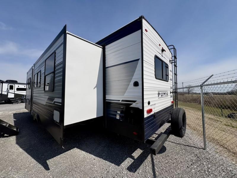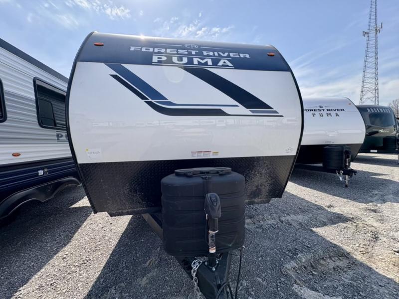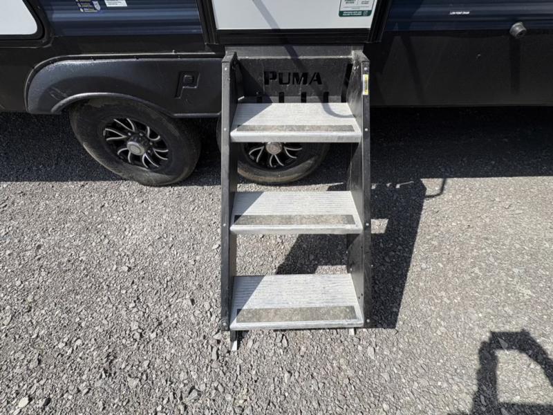 If you're looking for family-fun adventures then you need one of these Palomino Puma fifth wheels or travel trailers! They are built rugged, easy to tow, and jam packed with features. The Darco wrapped underbelly will protect your units vitals and the AlphaPly roofing membrane covers it. They also have new aluminum wheels and a powder coated steel I-beam frame. Inside, the Congoleum linoleum will be easy to keep clean, and the night roller shades will provide privacy when it's time to turn in. You'll also enjoy an electric awning with an LED light strip plus an AM/FM/Bluetooth stereo and two outside speakers to keep the party going!