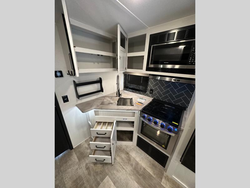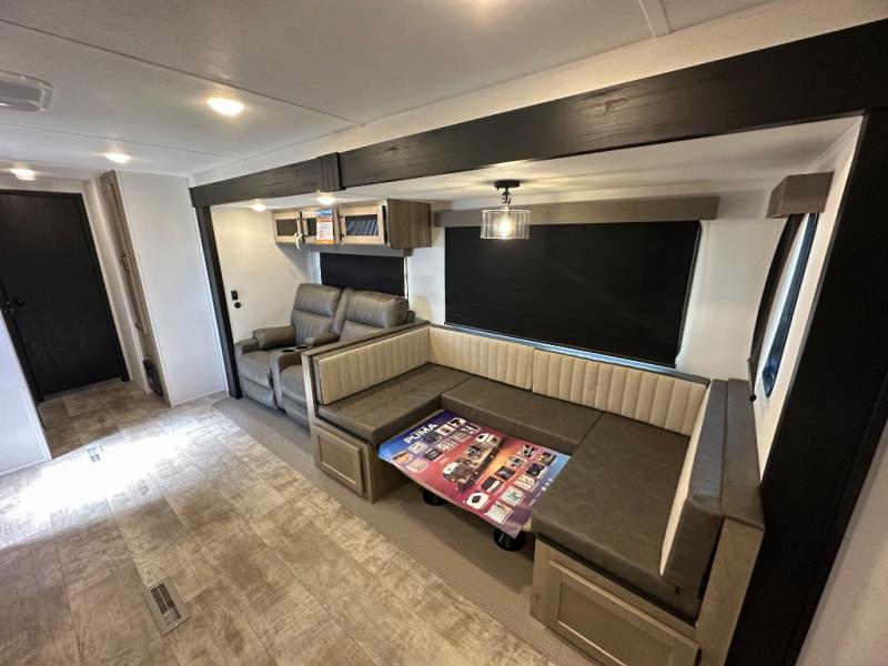U-Shaped Dinette, Bunkhouse w/Jiffy Sofa, USB Charging, Dual Entry Doors, Outside Shower.