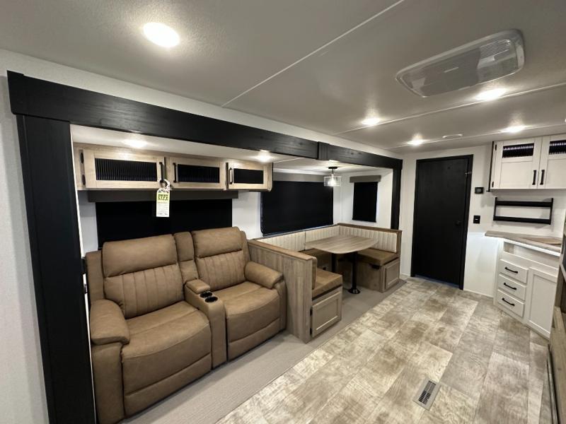 U-Shaped Dinette, Bunkhouse, Front Private Bedroom, Dual Entry, Outside Shower.