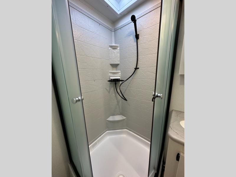 Packages / Amenities: Comes with things such as LED awning, stereo (AM/FM, Bluetooth), tub surround, solar prep, outside shower, 11 cu ft 12V refrigerator, etc.