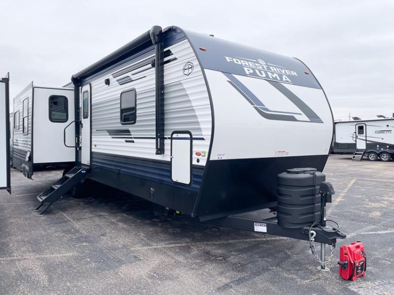 If you're looking for family-fun adventures then you need one of these Palomino Puma fifth wheels or travel trailers! They are built rugged, easy to tow, and jam packed with features. The Darco wrapped underbelly will protect your units vitals through every season and the AlphaPly roofing membrane covers it. They also have new aluminum wheels and a powder coated steel I-beam frame. Inside, the Congoleum linoleum will be easy to keep clean, and the night roller shades will provide privacy when it's time to turn in. You'll also enjoy an electric awning with an LED light strip plus an AM/FM/Bluetooth stereo and two outside speakers to keep the party going!
