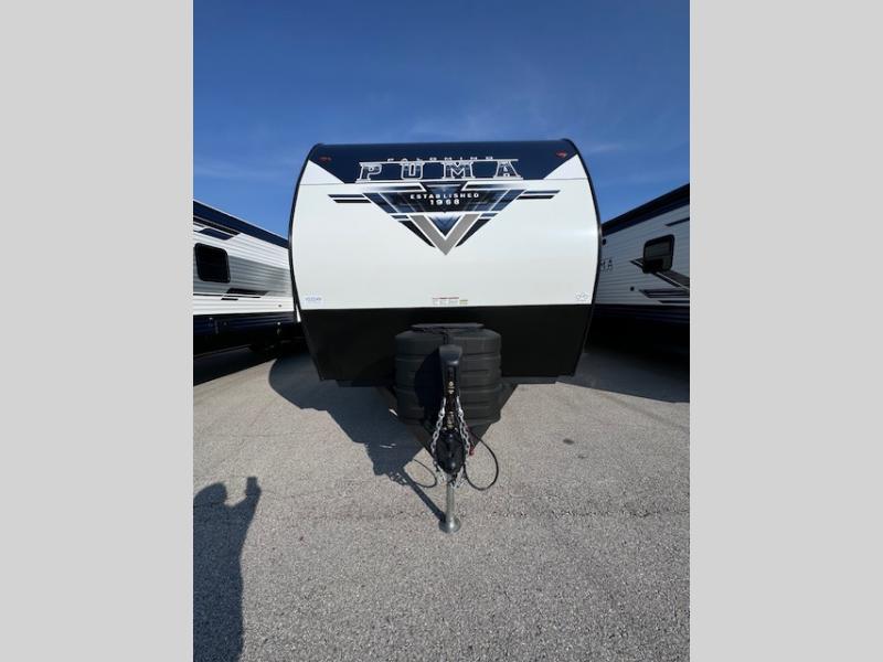 If you're looking for family-fun adventure then you need one of these Palomino Puma fifth wheels or travel trailers! They are built rugged, easy to tow, and jam packed with features. The Darco wrapped underbelly will protect your units vitals through every season and the AlphaPly roofing membrane covers it. They also have super lube axles and a powder coated frame. Their luxurious interiors feature a spice rack and built-in knife rack in the kitchen, USB charging ports to keep your electronics at 100%, and high density foam mattresses for a good night's rest. The required Advantage package comes with night roller shades for privacy at night, two outside speakers to crank up the tunes while you play cornhole, and an outside shower to keep the dirt outside where it belongs, plus so much more!