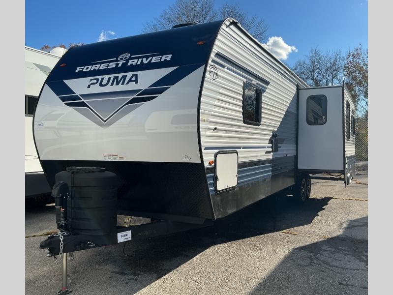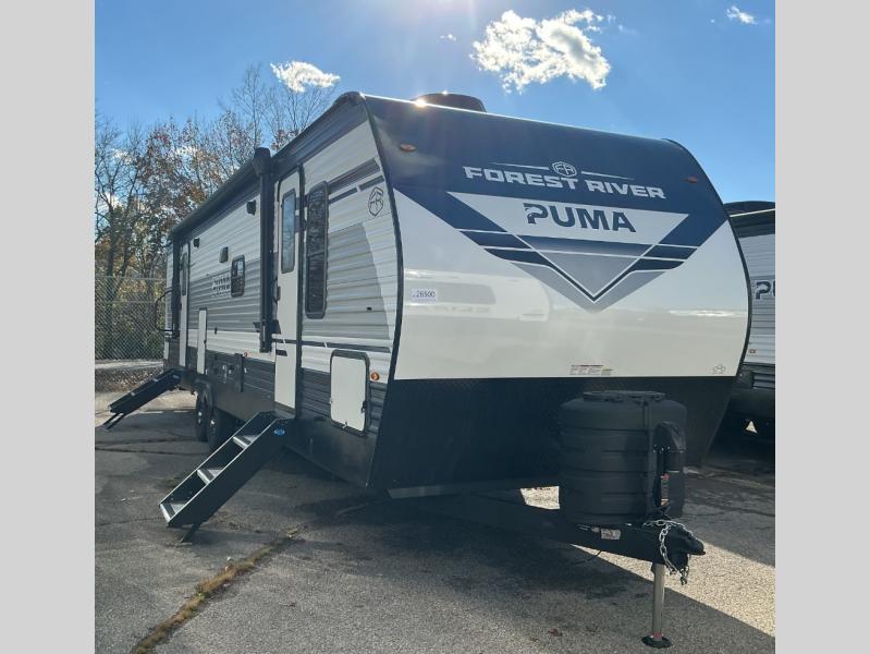 If you're looking for family-fun adventures then you need one of these Palomino Puma fifth wheels or travel trailers! They are built rugged, easy to tow, and jam packed with features. The Darco wrapped underbelly will protect your units vitals through every season and the AlphaPly roofing membrane covers it. They also have new aluminum wheels and a powder coated steel I-beam frame. Inside, the Congoleum linoleum will be easy to keep clean, and the night roller shades will provide privacy when it's time to turn in. You'll also enjoy an electric awning with an LED light strip plus an AM/FM/Bluetooth stereo and two outside speakers to keep the party going!