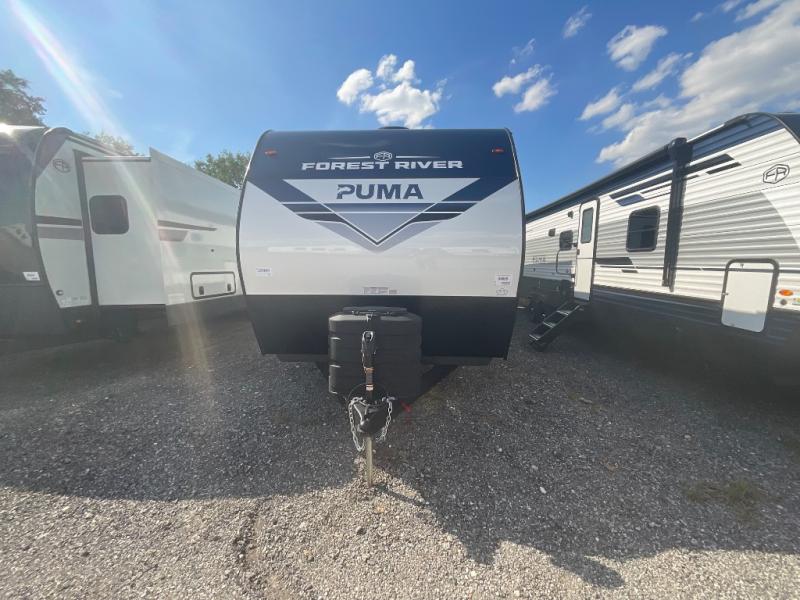 If you're looking for family-fun adventures then you need one of these Palomino Puma fifth wheels or travel trailers! They are built rugged, easy to tow, and jam packed with features. The Darco wrapped underbelly will protect your units vitals through every season and the AlphaPly roofing membrane covers it. They also have new aluminum wheels and a powder coated steel I-beam frame. Inside, the Congoleum linoleum will be easy to keep clean, and the night roller shades will provide privacy when it's time to turn in. You'll also enjoy an electric awning with an LED light strip plus an AM/FM/Bluetooth stereo and two outside speakers to keep the party going!