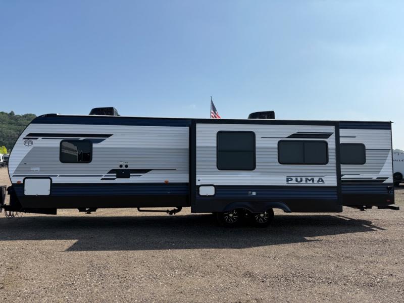 If you're looking for family-fun adventures then you need one of these Palomino Puma fifth wheels or travel trailers! They are built rugged, easy to tow, and jam packed with features. The Darco wrapped underbelly will protect your units vitals through every season and the AlphaPly roofing membrane covers it. They also have new aluminum wheels and a powder coated steel I-beam frame. Inside, the Congoleum linoleum will be easy to keep clean, and the night roller shades will provide privacy when it's time to turn in. You'll also enjoy an electric awning with an LED light strip plus an AM/FM/Bluetooth stereo and two outside speakers to keep the party going!