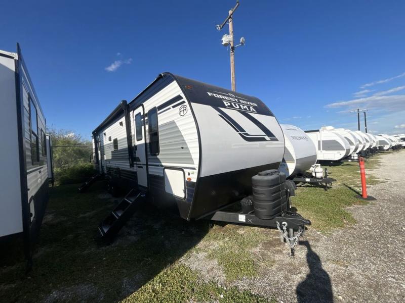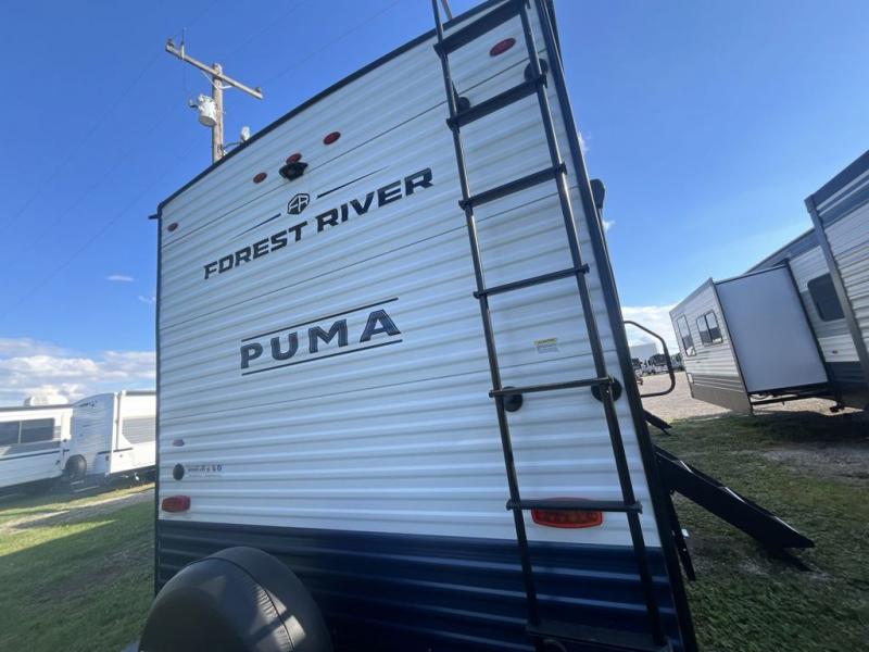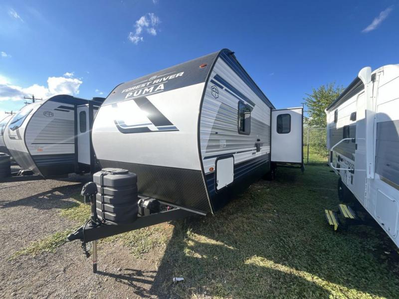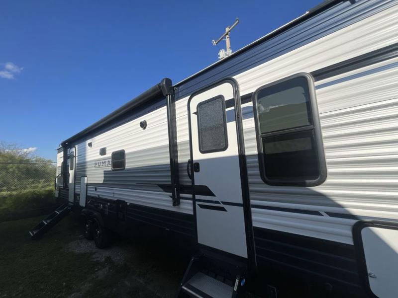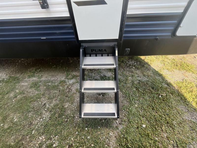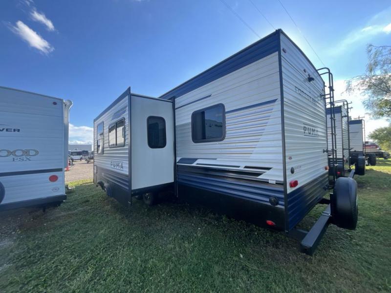 If you're looking for family-fun adventures then you need one of these Palomino Puma fifth wheels or travel trailers! They are built rugged, easy to tow, and jam packed with features. The Darco wrapped underbelly will protect your units vitals through every season and the AlphaPly roofing membrane covers it. They also have new aluminum wheels and a powder coated steel I-beam frame. Inside, the Congoleum linoleum will be easy to keep clean, and the night roller shades will provide privacy when it's time to turn in. You'll also enjoy an electric awning with an LED light strip plus an AM/FM/Bluetooth stereo and two outside speakers to keep the party going!