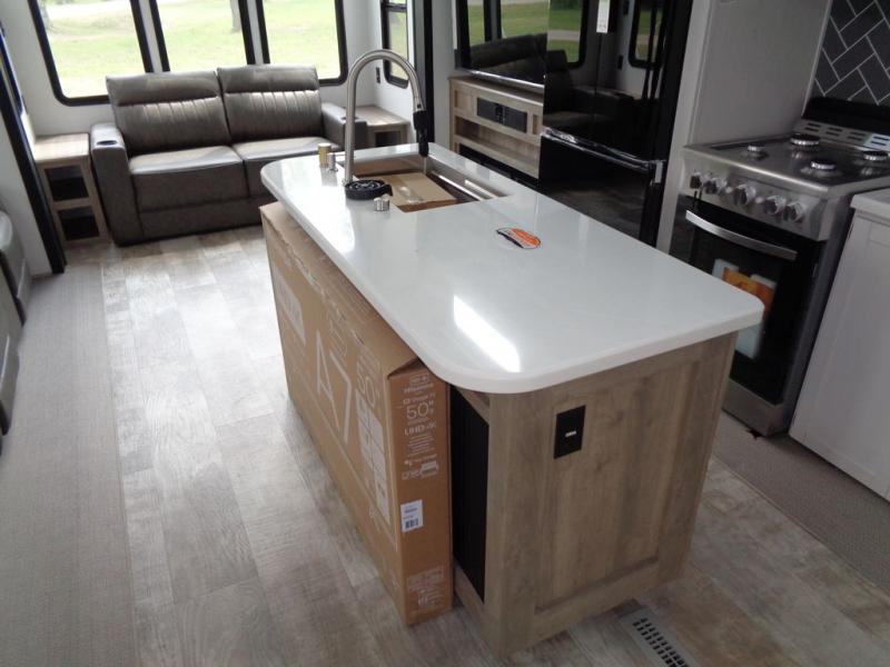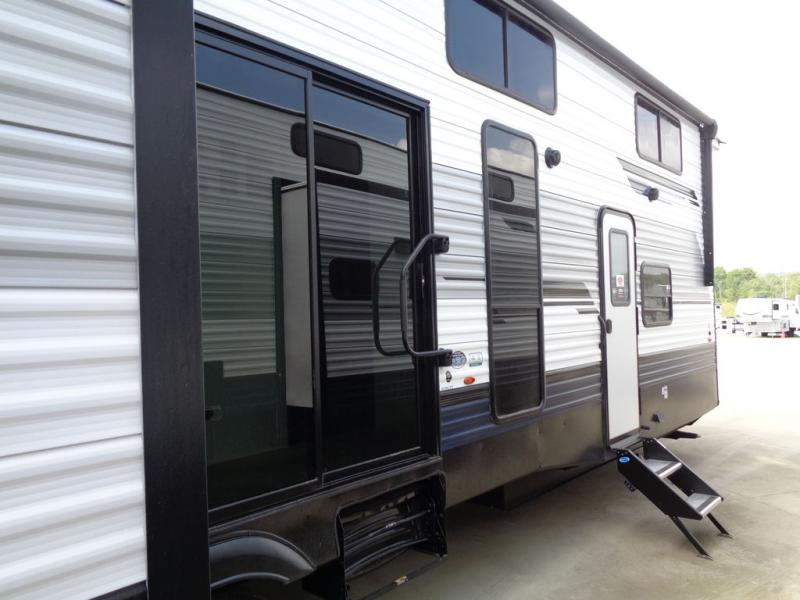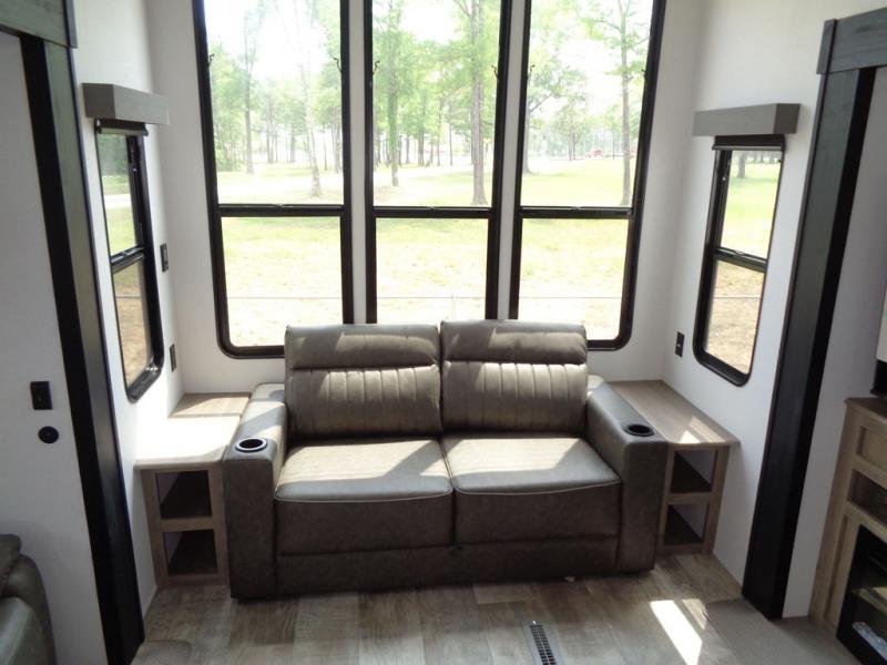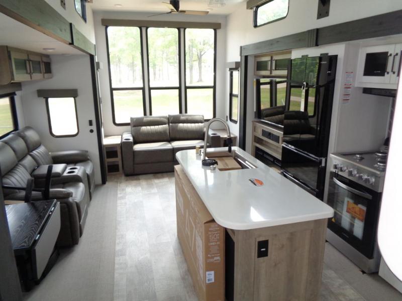 No hidden fees!STONE DECOR,(3) A/C'S, 50" TV, TANKLESS WATER HEATER, WASHER/DRYER PREP, ROOF LADDER, WIFI PREP, STEREO-AM/FM/BLUETOOTH, PREWIRED FOR SOLAR SYSTEM, BLACK TANK FLUSH, PATIO DOOR, RESIDENTIAL REFER, 1.3 CF MICROWAVE, 5100 BTU COLOR CHANGING FIREPLACE, TRI-FOLD SOFA IPO JACKNIFE IN LIVINGROOM, TABLE & CHAIRS IPO DINETTE, OUTSIDE SHOWER, 12V CEILING FAN IN LIVINGROOM- Gadsden store- Reduced to $50,998 plus tax, title, and doc!