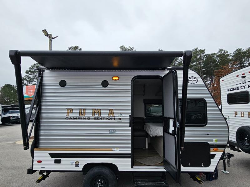 The Puma Camping Edition 121RKCE is ideal for campers who want a compact and lightweight travel trailer without sacrificing essential amenities. Its thoughtful design, including a well-equipped kitchen, private bathroom, and ample storage, ensures a comfortable and convenient camping experience. Whether you’re embarking on a weekend getaway or a cross-country adventure, this travel trailer offers the perfect balance of affordability, functionality, and comfort to make every trip unforgettable.