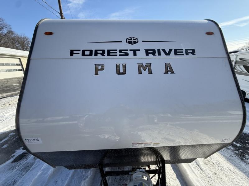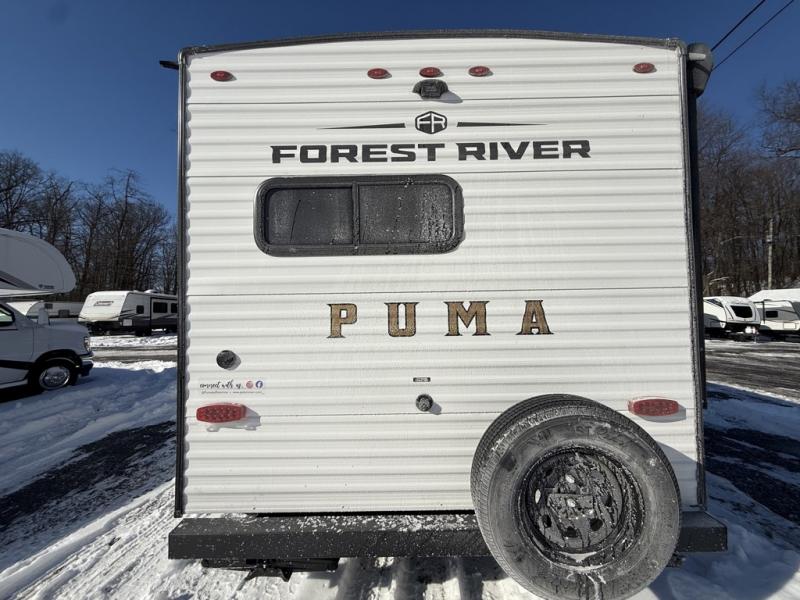 The Puma Camping Edition by Palomino offer an affordable travel trailer for rookie campers or seasoned RVers! They are built with 5/8" tongue and groove plywood flooring and a front diamond plate for added protection. There are also exterior clamp style door latches, back up camera prep, and 20 lb. LP bottles. Head inside to find Thermofoil countertops with a smooth drop edge, bedroom USB ports and outlets, and a GE appliance and kitchen package.