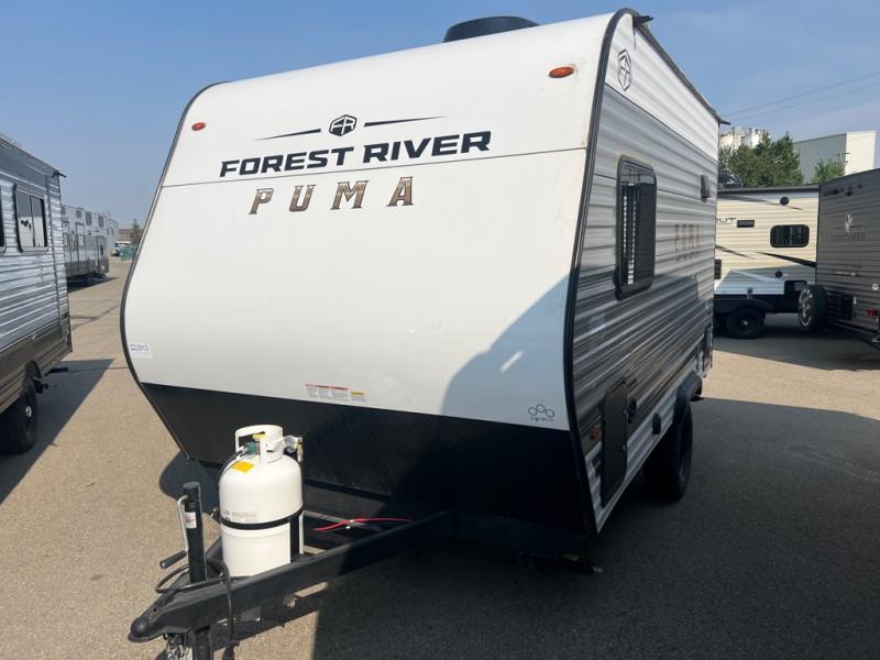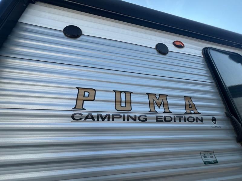 The Puma Camping Edition by Palomino offer an affordable travel trailer for rookie campers or seasoned RVers! They are built with 5/8" tongue and groove plywood flooring and a front diamond plate for added protection. There are also exterior clamp style door latches, back up camera prep, and 20 lb. LP bottles. Head inside to find Thermofoil countertops with a smooth drop edge, bedroom USB ports and outlets, and a GE appliance and kitchen package.