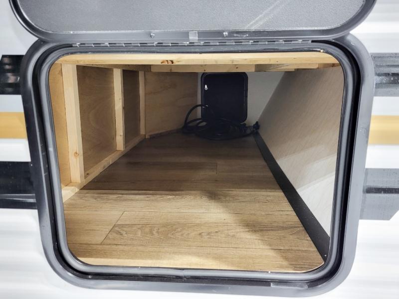 It will be so easy to enjoy camping trips in this single axle travel trailer! There is an RV queen bed up front with flip-up storage at the foot of the bed for your belongings, and any additional guests can sleep on the sofa. A full kitchen includes a stainless two burner cooktop and stainless microwave to cook meals each day, and the 4.3 cu. ft. 12V black glass refrigerator will keep your food fresh. And a private bath with a toilet and shower will let you freshen up without having to use the camp's facilities!
