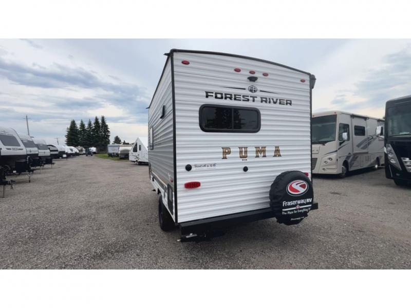 The Puma Camping Edition by Palomino offer an affordable travel trailer for rookie campers or seasoned RVers! They are built with 5/8" tongue and groove plywood flooring and a front diamond plate for added protection. There are also exterior clamp style door latches, back up camera prep, and 20 lb. LP bottles. Head inside to find Thermofoil countertops with a smooth drop edge, bedroom USB ports and outlets, and a GE appliance and kitchen package.