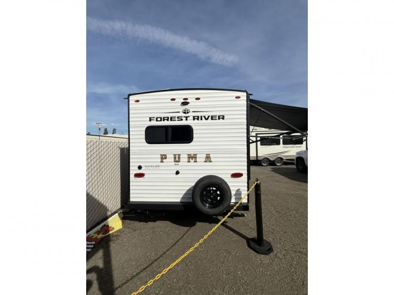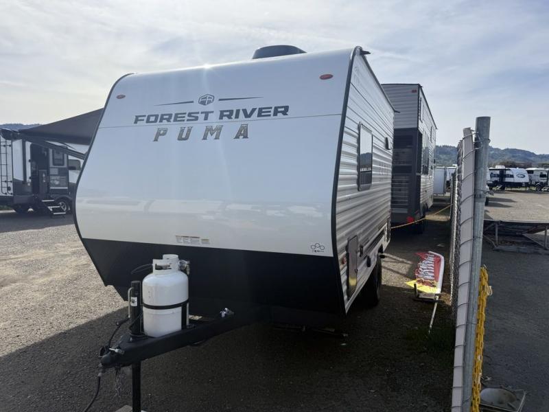 The Puma Camping Edition by Palomino offer an affordable travel trailer for rookie campers or seasoned RVers! They are built with 5/8" tongue and groove plywood flooring and a front diamond plate for added protection. There are also exterior clamp style door latches, back up camera prep, and 20 lb. LP bottles. Head inside to find Thermofoil countertops with a smooth drop edge, bedroom USB ports and outlets, and a GE appliance and kitchen package.