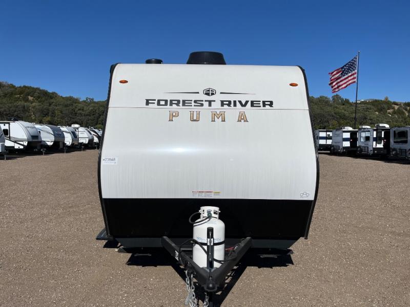The Puma Camping Edition by Palomino offer an affordable travel trailer for rookie campers or seasoned RVers! They are built with 5/8" tongue and groove plywood flooring and a front diamond plate for added protection. There are also exterior clamp style door latches, back up camera prep, and 20 lb. LP bottles. Head inside to find Thermofoil countertops with a smooth drop edge, bedroom USB ports and outlets, and a GE appliance and kitchen package.