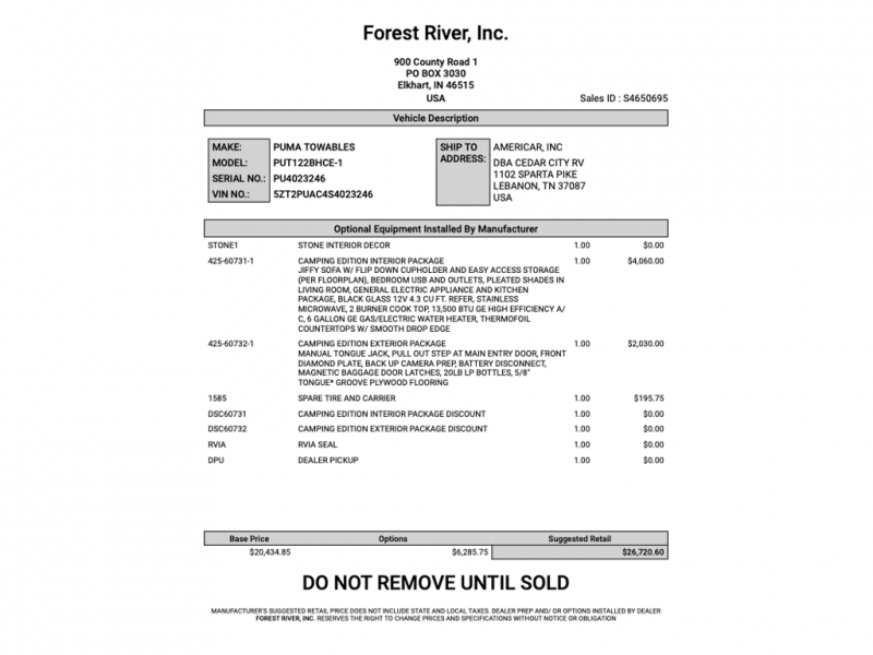 Palomino Puma Camping Edition travel trailer 122BHCE highlights: