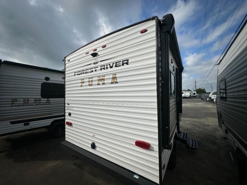 The Puma Camping Edition by Palomino offer an affordable travel trailer for rookie campers or seasoned RVers! They are built with 5/8" tongue and groove plywood flooring and a front diamond plate for added protection. There are also exterior clamp style door latches, back up camera prep, and 20 lb. LP bottles. Head inside to find Thermofoil countertops with a smooth drop edge, bedroom USB ports and outlets, and a GE appliance and kitchen package.