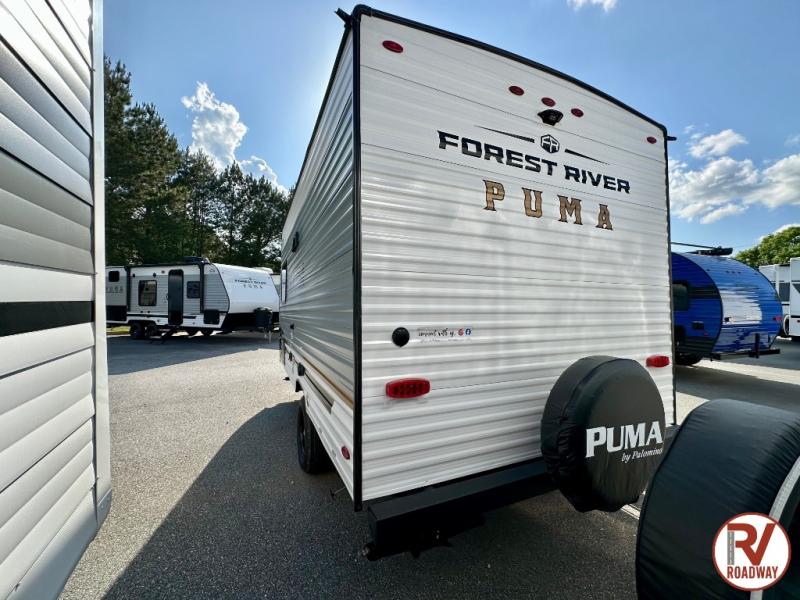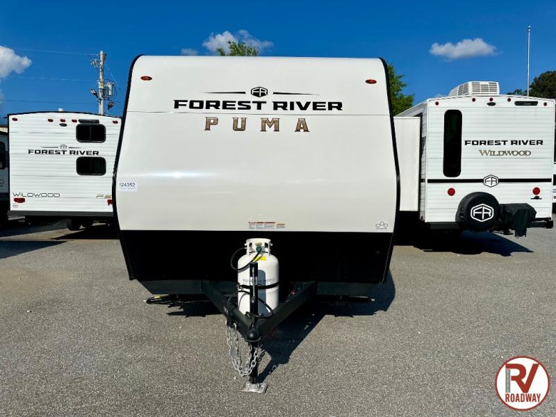 The Puma Camping Edition by Palomino offer an affordable travel trailer for rookie campers or seasoned RVers! They are built with 5/8" tongue and groove plywood flooring and a front diamond plate for added protection. There are also exterior clamp style door latches, back up camera prep, and 20 lb. LP bottles. Head inside to find Thermofoil countertops with a smooth drop edge, bedroom USB ports and outlets, and a GE appliance and kitchen package.