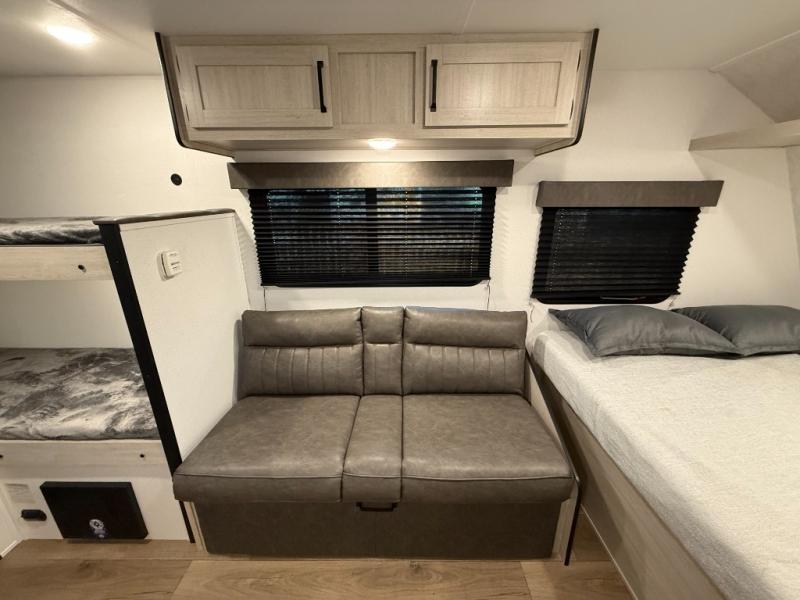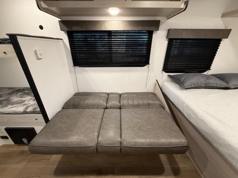 Front Queen Bed, Rear Bathroom, Bunk Beds, Lightweight, Sofa, Storage.