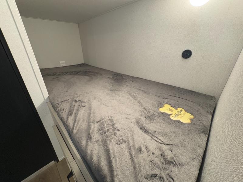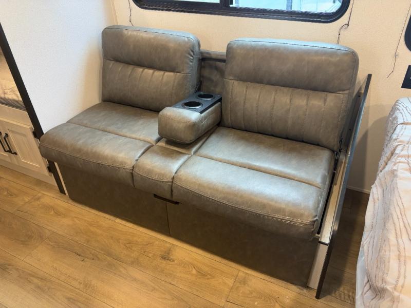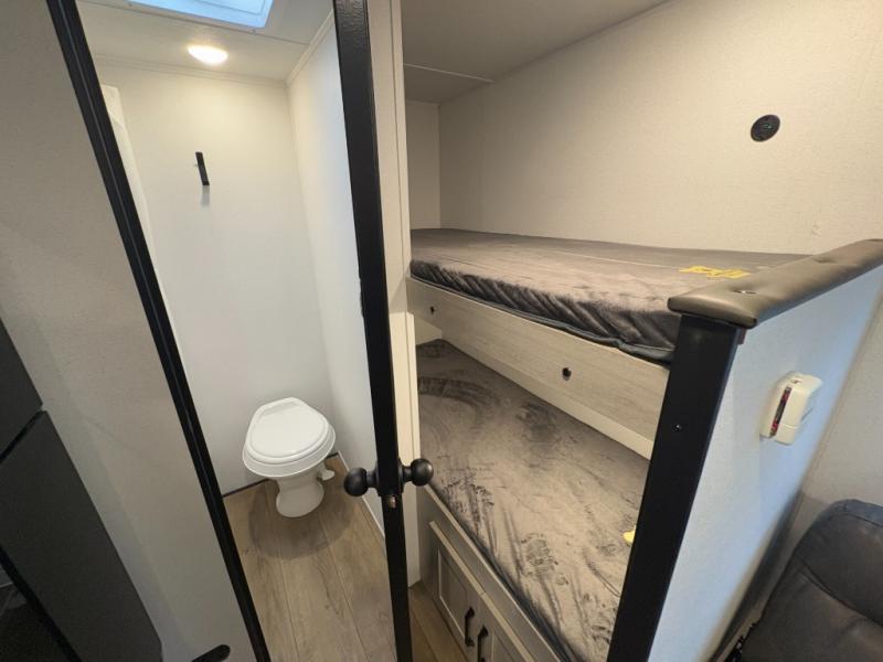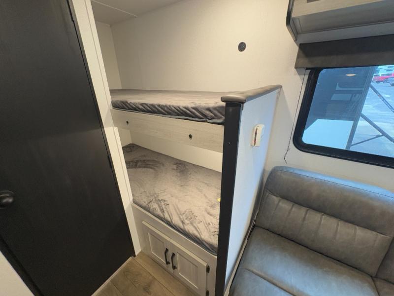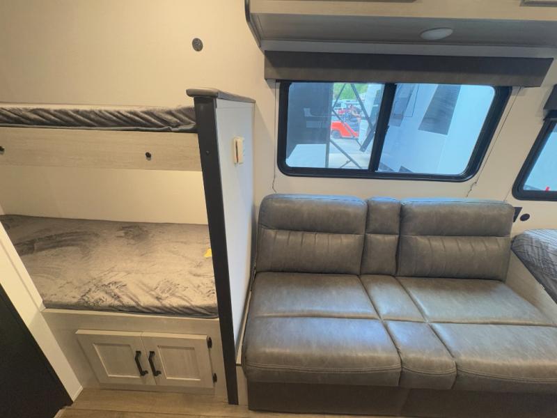Bunk Beds, Front Queen Bed, Shower w/Seat, Solid Steps, Jiffy Sofa, Lightweight.