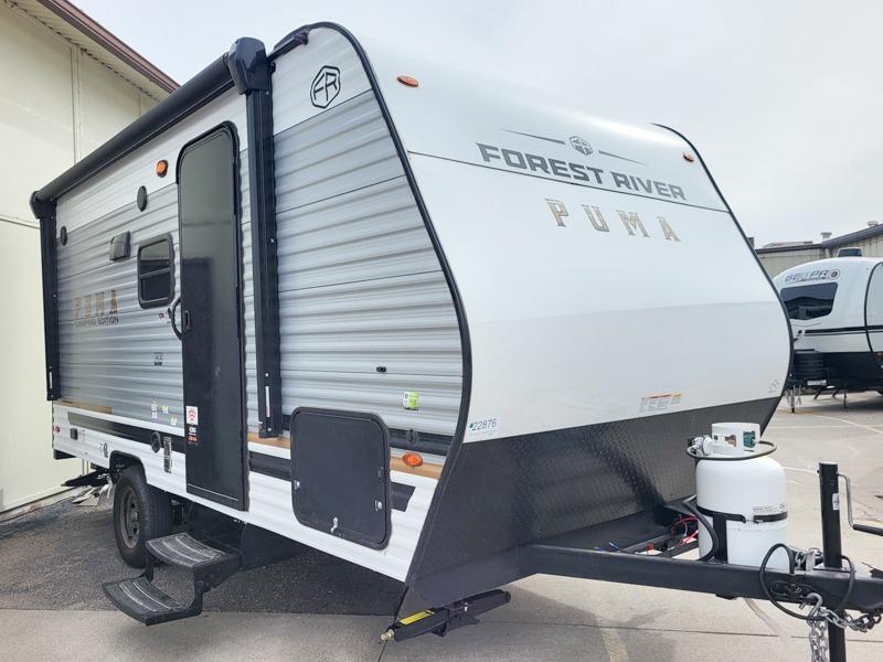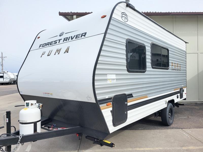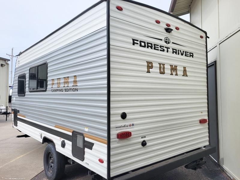 The Puma Camping Edition by Palomino offer an affordable travel trailer for rookie campers or seasoned RVers! They are built with 5/8" tongue and groove plywood flooring and a front diamond plate for added protection. There are also exterior clamp style door latches, back up camera prep, and 20 lb. LP bottles. Head inside to find Thermofoil countertops with a smooth drop edge, bedroom USB ports and outlets, and a GE appliance and kitchen package.