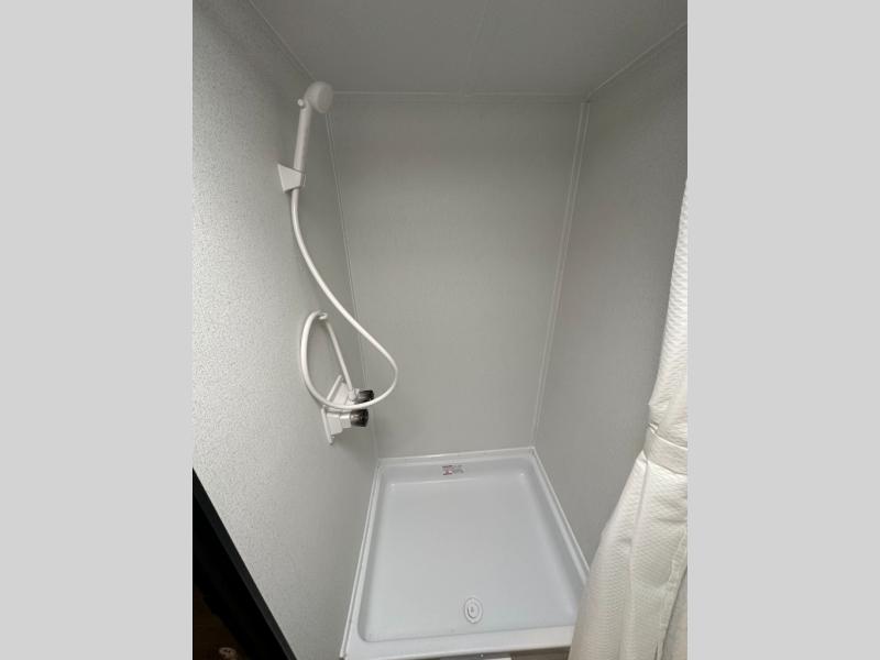 Bathroom: shower with seat, toilet; often the shower is 32" x 40" in listings.