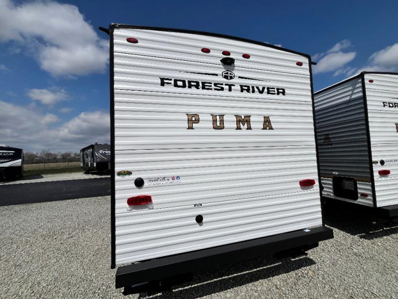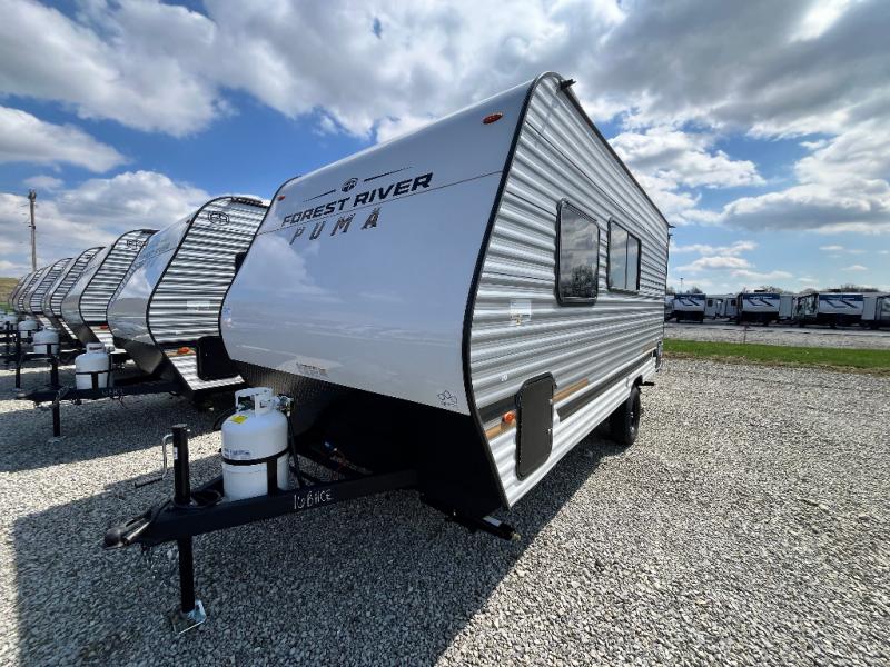 The Puma Camping Edition by Palomino offer an affordable travel trailer for rookie campers or seasoned RVers! They are built with 5/8" tongue and groove plywood flooring and a front diamond plate for added protection. There are also exterior clamp style door latches, back up camera prep, and 20 lb. LP bottles. Head inside to find Thermofoil countertops with a smooth drop edge, bedroom USB ports and outlets, and a GE appliance and kitchen package.
