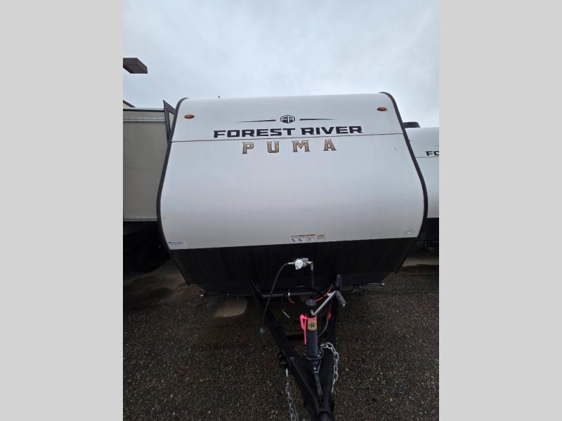 The Puma Camping Edition by Palomino offer an affordable travel trailer for rookie campers or seasoned RVers! They are built with 5/8" tongue and groove plywood flooring and a front diamond plate for added protection. There are also exterior clamp style door latches, back up camera prep, and 20 lb. LP bottles. Head inside to find Thermofoil countertops with a smooth drop edge, bedroom USB ports and outlets, and a GE appliance and kitchen package.