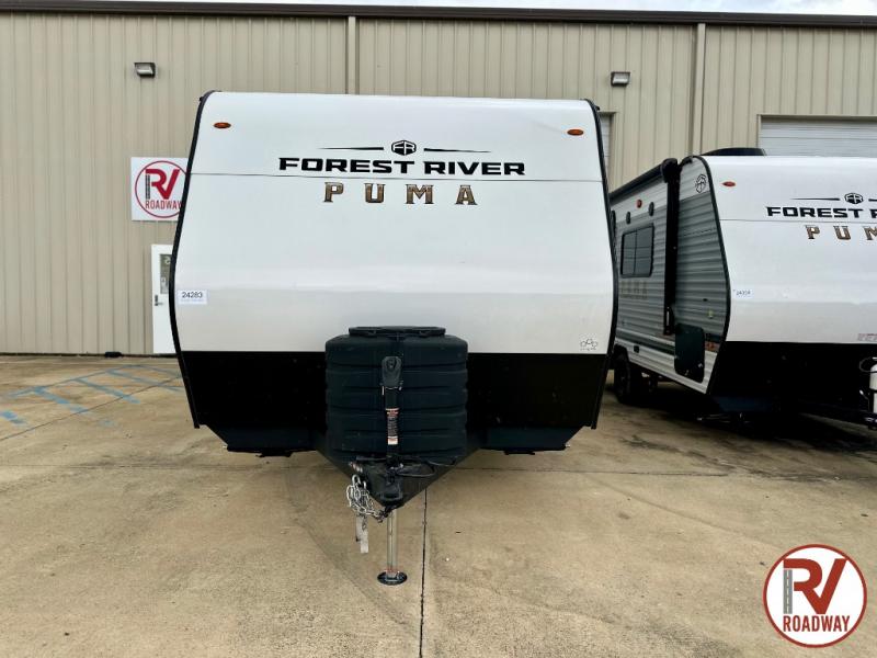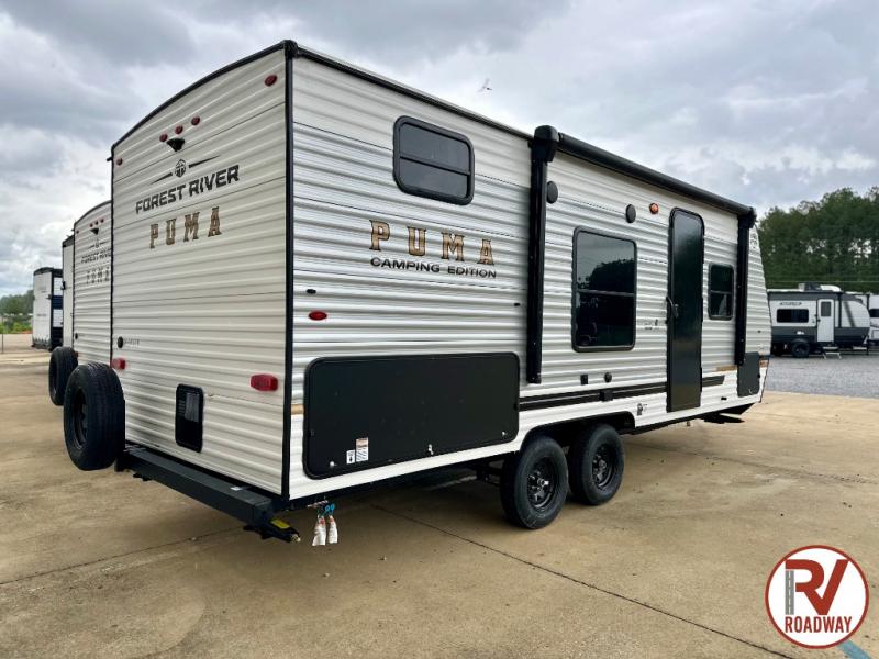 The Puma Camping Edition by Palomino offer an affordable travel trailer for rookie campers or seasoned RVers! They are built with 5/8" tongue and groove plywood flooring and a front diamond plate for added protection. There are also exterior clamp style door latches, back up camera prep, and 20 lb. LP bottles. Head inside to find Thermofoil countertops with a smooth drop edge, bedroom USB ports and outlets, and a GE appliance and kitchen package.