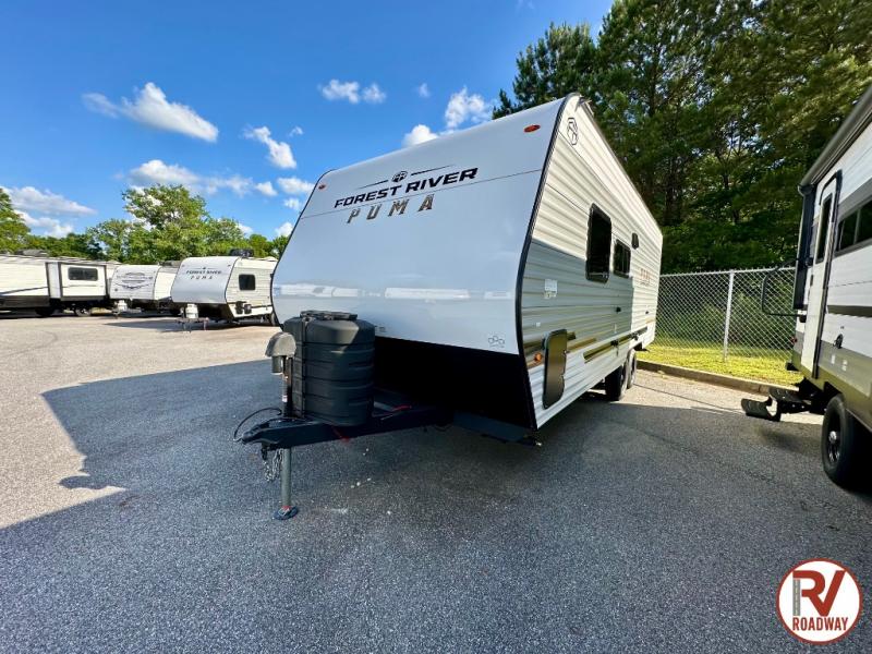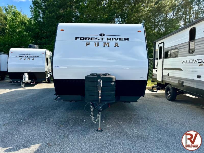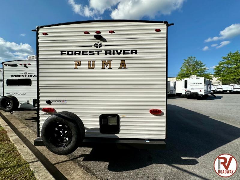 The Puma Camping Edition by Palomino offer an affordable travel trailer for rookie campers or seasoned RVers! They are built with 5/8" tongue and groove plywood flooring and a front diamond plate for added protection. There are also exterior clamp style door latches, back up camera prep, and 20 lb. LP bottles. Head inside to find Thermofoil countertops with a smooth drop edge, bedroom USB ports and outlets, and a GE appliance and kitchen package.