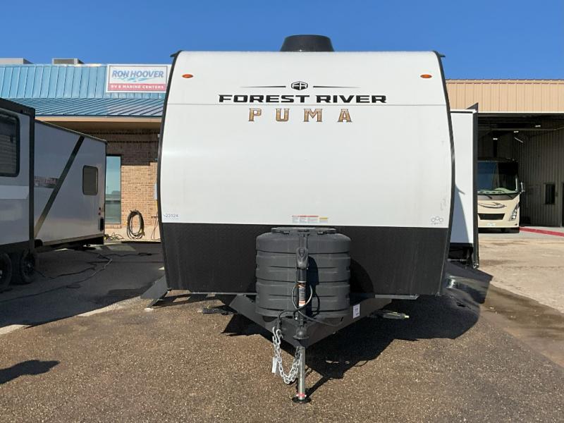 The Puma Camping Edition by Palomino offer an affordable travel trailer for rookie campers or seasoned RVers! They are built with 5/8" tongue and groove plywood flooring and a front diamond plate for added protection. There are also exterior clamp style door latches, back up camera prep, and 20 lb. LP bottles. Head inside to find Thermofoil countertops with a smooth drop edge, bedroom USB ports and outlets, and a GE appliance and kitchen package.