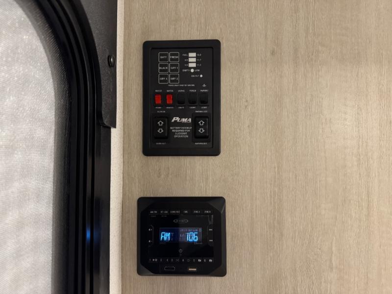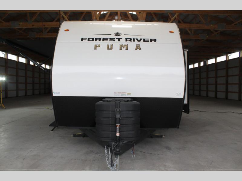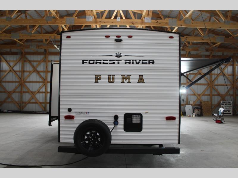 The Puma Camping Edition by Palomino offer an affordable travel trailer for rookie campers or seasoned RVers! They are built with 5/8" tongue and groove plywood flooring and a front diamond plate for added protection. There are also exterior clamp style door latches, back up camera prep, and 20 lb. LP bottles. Head inside to find Thermofoil countertops with a smooth drop edge, bedroom USB ports and outlets, and a GE appliance and kitchen package.