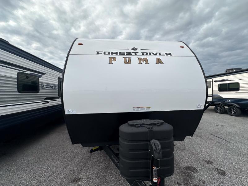 The Puma Camping Edition by Palomino offer an affordable travel trailer for rookie campers or seasoned RVers! They are built with 5/8" tongue and groove plywood flooring and a front diamond plate for added protection. There are also exterior clamp style door latches, back up camera prep, and 20 lb. LP bottles. Head inside to find Thermofoil countertops with a smooth drop edge, bedroom USB ports and outlets, and a GE appliance and kitchen package.