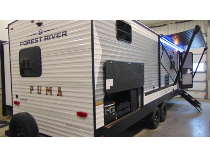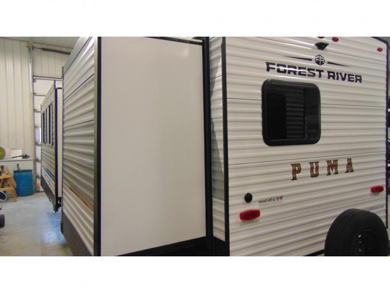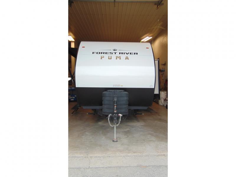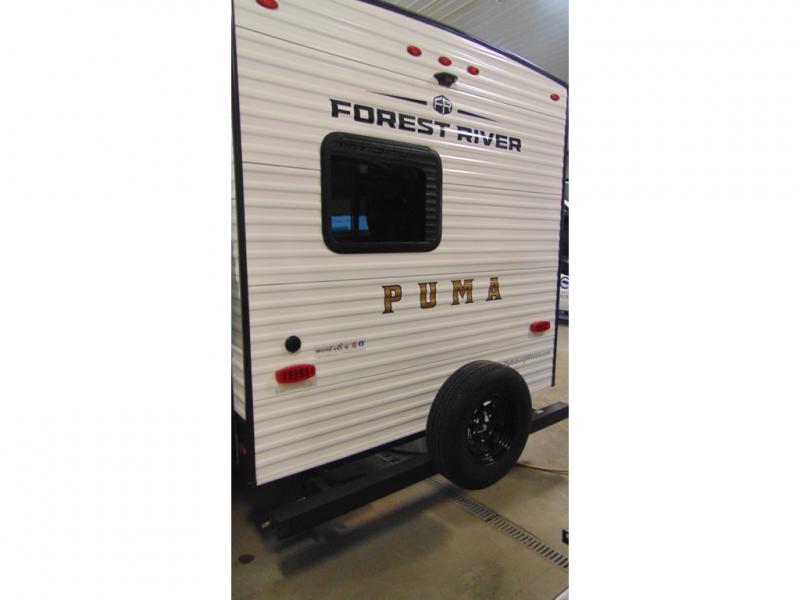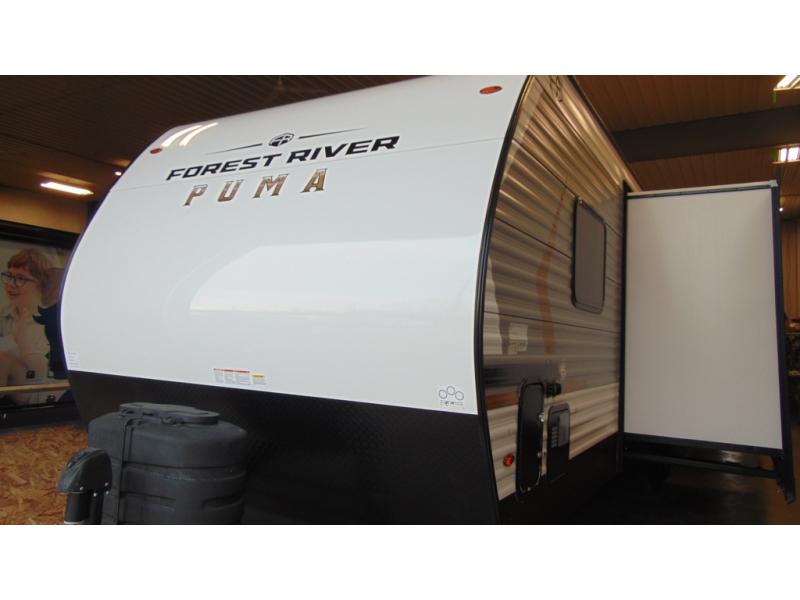 The Puma Camping Edition by Palomino offer an affordable travel trailer for rookie campers or seasoned RVers! They are built with 5/8" tongue and groove plywood flooring and a front diamond plate for added protection. There are also exterior clamp style door latches, back up camera prep, and 20 lb. LP bottles. Head inside to find Thermofoil countertops with a smooth drop edge, bedroom USB ports and outlets, and a GE appliance and kitchen package.