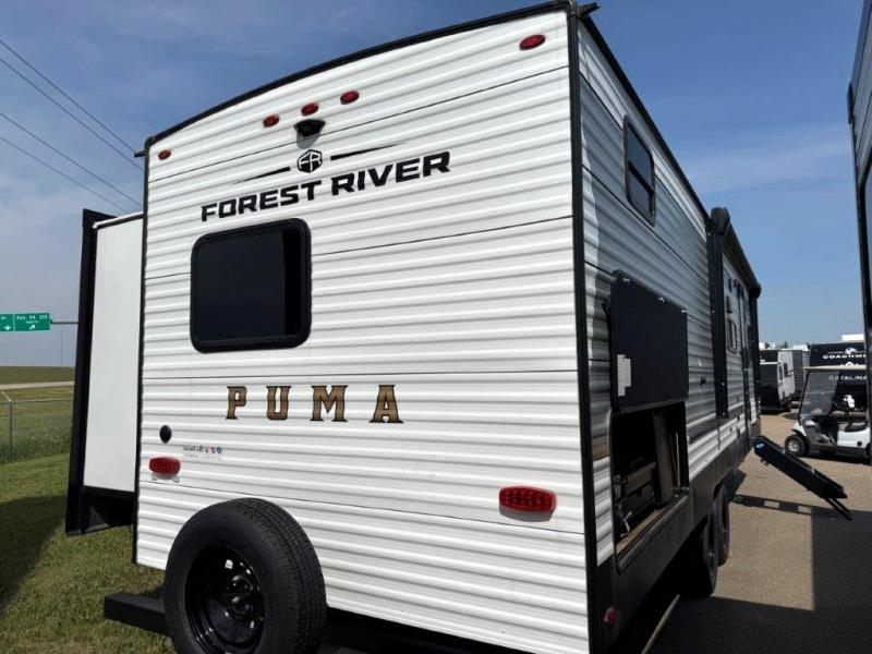 The Puma Camping Edition by Palomino offer an affordable travel trailer for rookie campers or seasoned RVers! They are built with 5/8" tongue and groove plywood flooring and a front diamond plate for added protection. There are also exterior clamp style door latches, back up camera prep, and 20 lb. LP bottles. Head inside to find Thermofoil countertops with a smooth drop edge, bedroom USB ports and outlets, and a GE appliance and kitchen package.