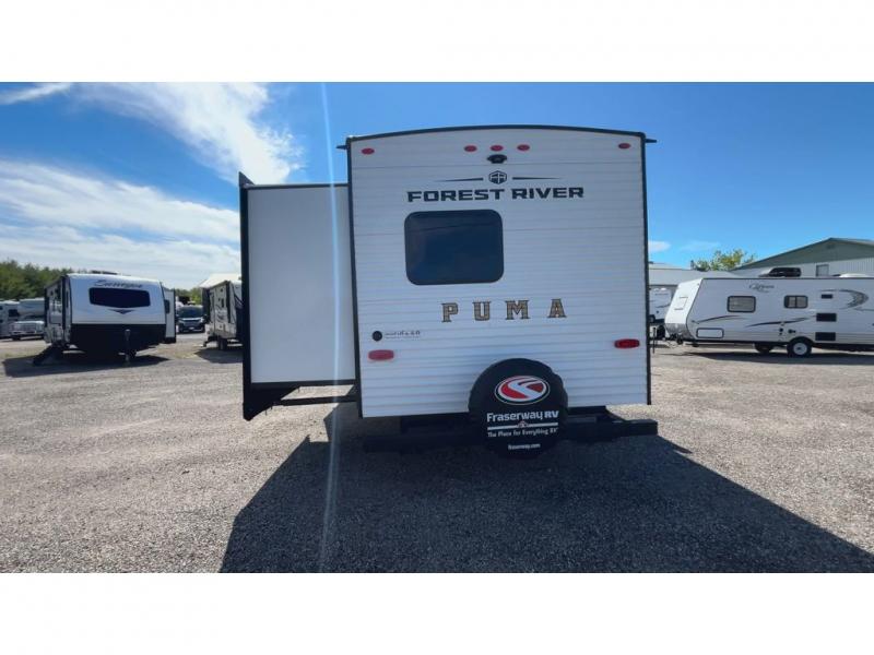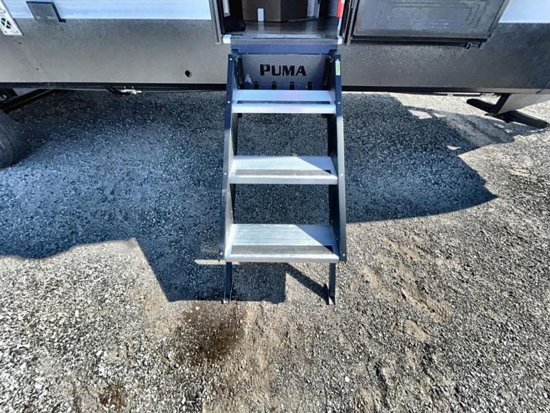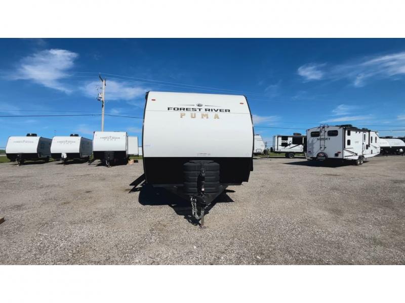 The Puma Camping Edition by Palomino offer an affordable travel trailer for rookie campers or seasoned RVers! They are built with 5/8" tongue and groove plywood flooring and a front diamond plate for added protection. There are also exterior clamp style door latches, back up camera prep, and 20 lb. LP bottles. Head inside to find Thermofoil countertops with a smooth drop edge, bedroom USB ports and outlets, and a GE appliance and kitchen package.