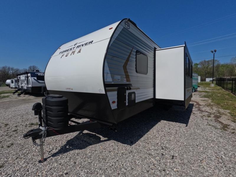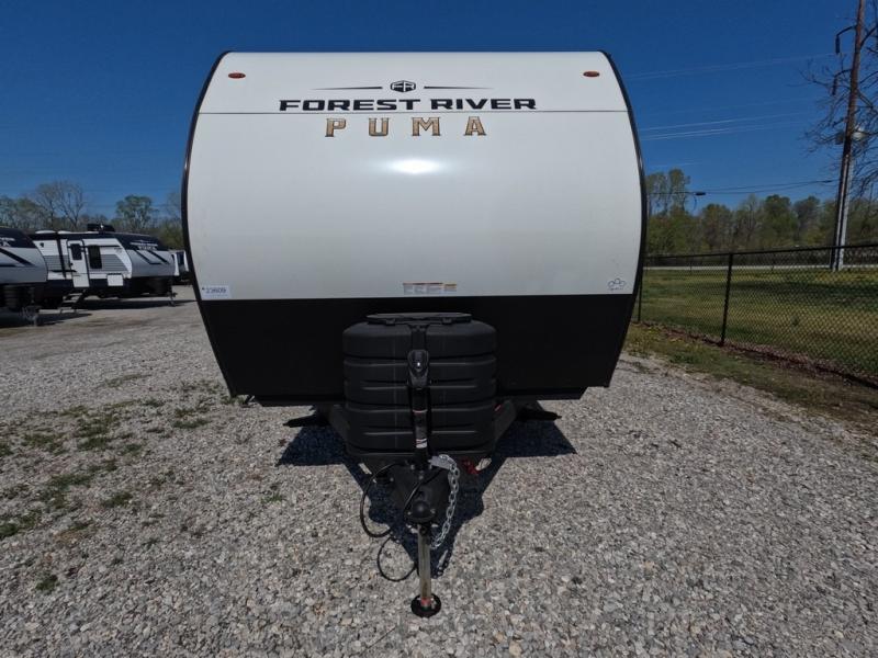 The Puma Camping Edition by Palomino offer an affordable travel trailer for rookie campers or seasoned RVers! They are built with 5/8" tongue and groove plywood flooring and a front diamond plate for added protection. There are also exterior clamp style door latches, back up camera prep, and 20 lb. LP bottles. Head inside to find Thermofoil countertops with a smooth drop edge, bedroom USB ports and outlets, and a GE appliance and kitchen package.