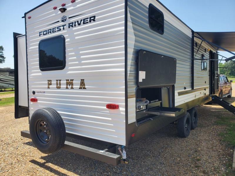 The Puma Camping Edition by Palomino offer an affordable travel trailer for rookie campers or seasoned RVers! They are built with 5/8" tongue and groove plywood flooring and a front diamond plate for added protection. There are also exterior clamp style door latches, back up camera prep, and 20 lb. LP bottles. Head inside to find Thermofoil countertops with a smooth drop edge, bedroom USB ports and outlets, and a GE appliance and kitchen package.