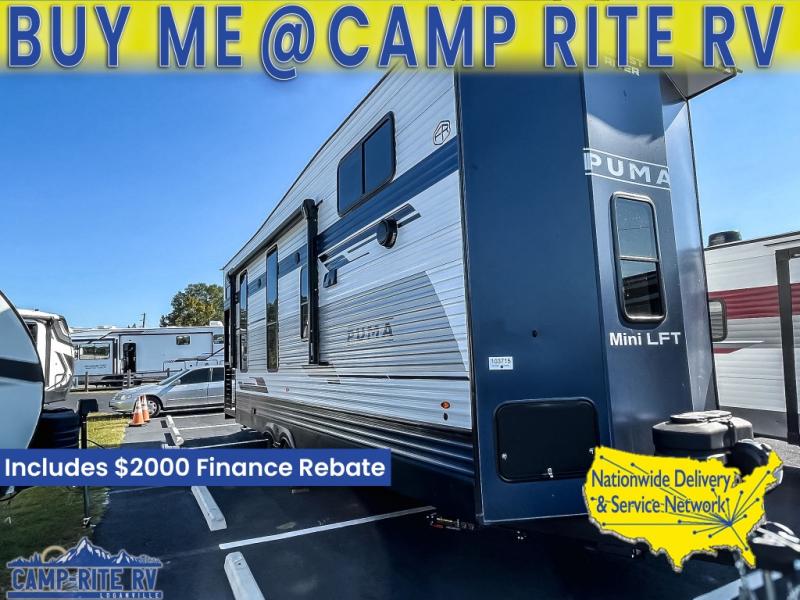 Each Puma Mini Loft by Palomino is designed for both comfort and durability with pre-wiring for WiFi, a tankless water heater, a folding grab handle, and night roller shades. The residential features like the undermount stainless steel sink with a sprayer, 24" stainless steel oven with a four-burner stove, and a range hood ensure a high-quality experience whether you're on the road or at your favorite destination!