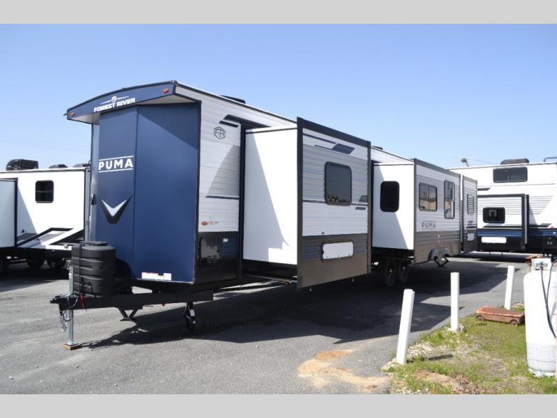 Each Puma Destination trailer by Palomino is designed to give you unforgettable getaways to the destination of your choice! The Value Shopper Package features Congoleum linoleum, LED lighting, an AM/FM/Bluetooth stereo, and an upgraded kitchen faucet to name a few comforts. Two exterior speakers are included with the required Marquis Edition, along with solid surface countertops, night roller shades, an outside shower, and four stabilizer jacks to help keep your unit secure. You will also appreciate the roof and side mount solar prep for off-grid capabilities, as well as WiFi prep if you need the option to work while you're away from home!