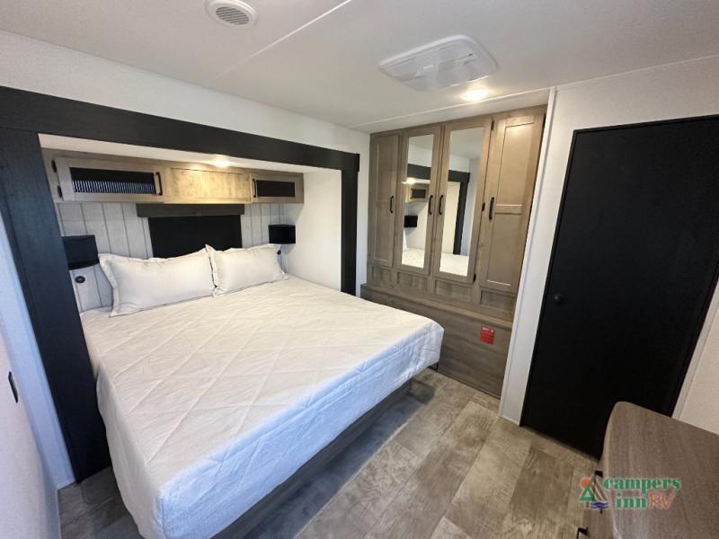 " LET'S GO CAMPING " Find Your Away at Campers Inn RV Kingston, NH; Residential Style Refrigerator; Second Bedroom