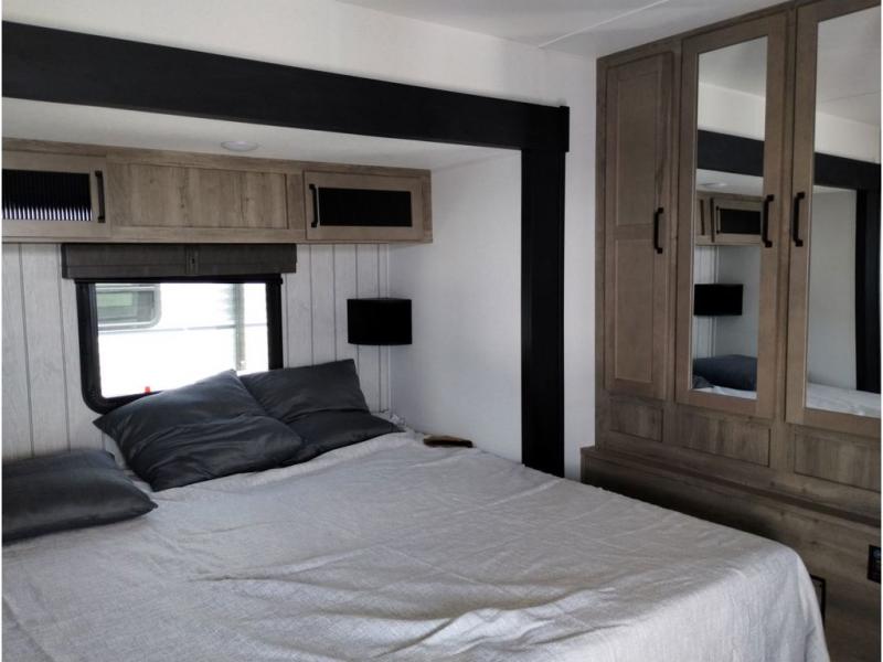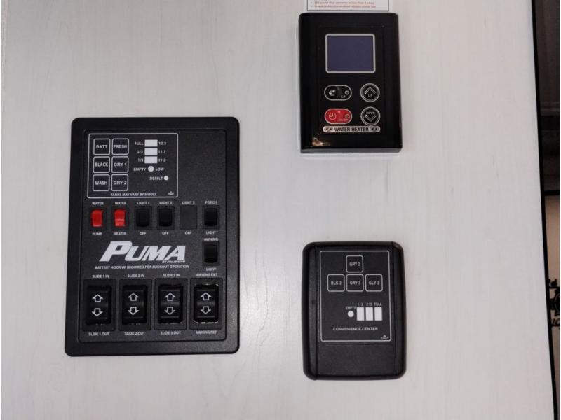 Get out of town and start enjoying the beautiful weather and scenery where you have chosen to place this Puma Destination. This spacious trailer has three slide outs for lots of interior floor space, plus two entries for convenience. The front bedroom offers a king bed slide, two closets, and a dresser. The rear bedroom suite includes a full bathroom and a queen bed slide, a vanity and a wardrobe. In between you can relax in the combined living and kitchen area on the sofa or booth dinette while visiting with the cook with full amenities.