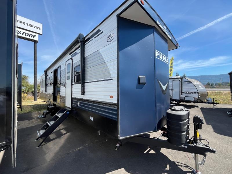 Each Puma Destination trailer by Palomino is designed to give you unforgettable getaways to the destination of your choice! The Value Shopper Package features Congoleum linoleum, LED lighting, an AM/FM/Bluetooth stereo, and an upgraded kitchen faucet to name a few comforts. Two exterior speakers are included with the required Marquis Edition, along with solid surface countertops, night roller shades, an outside shower, and four stabilizer jacks to help keep your unit secure. You will also appreciate the roof and side mount solar prep for off-grid capabilities, as well as WiFi prep if you need the option to work while you're away from home!