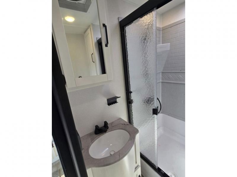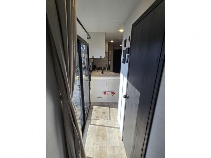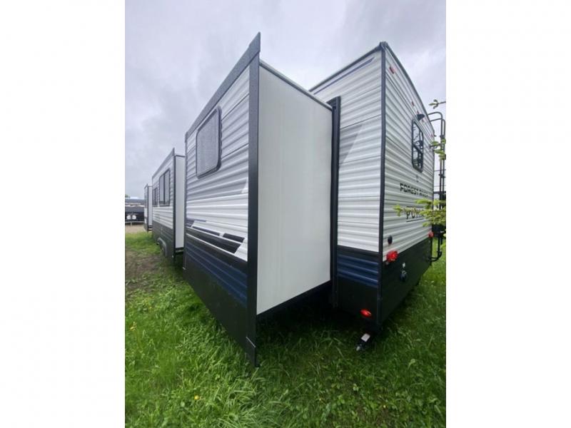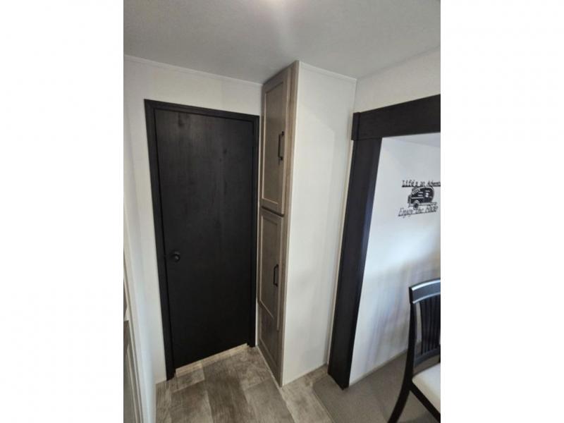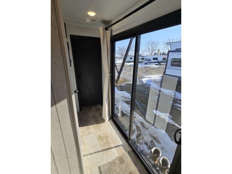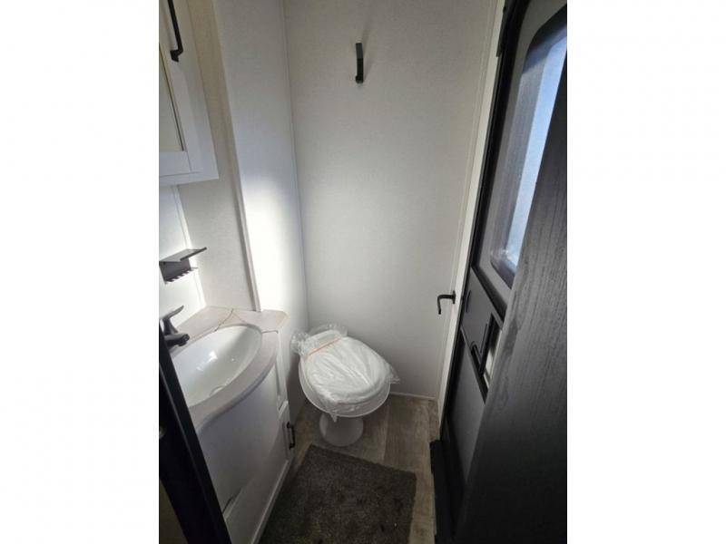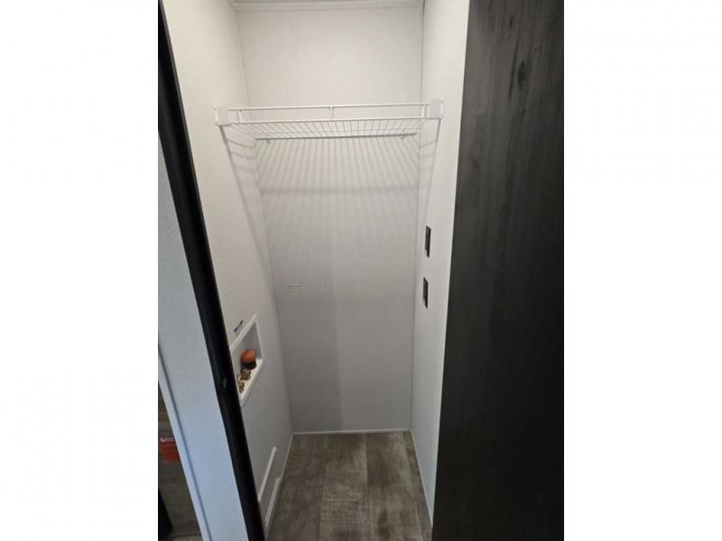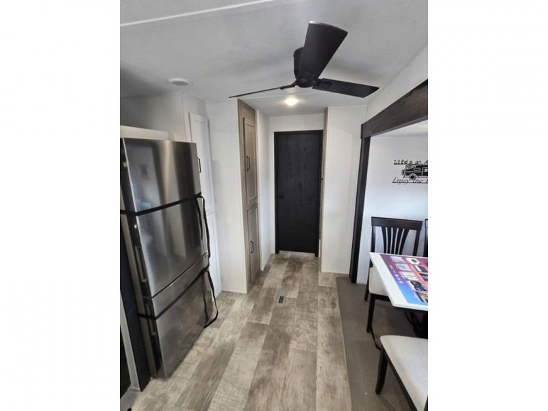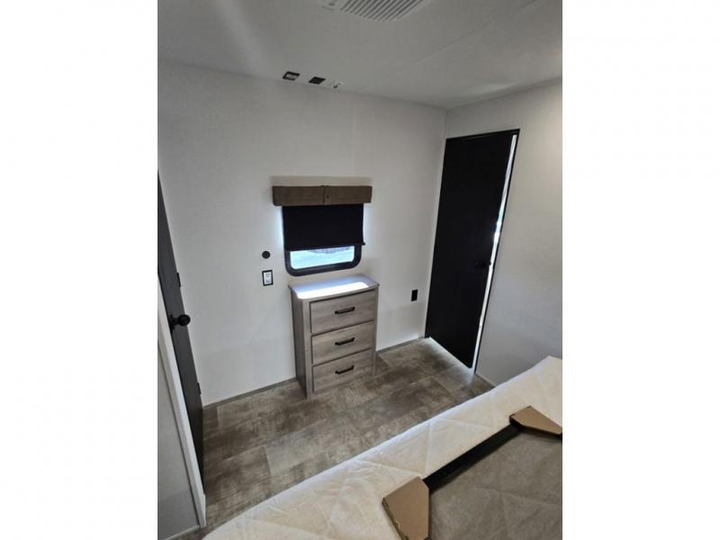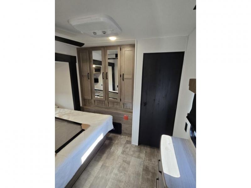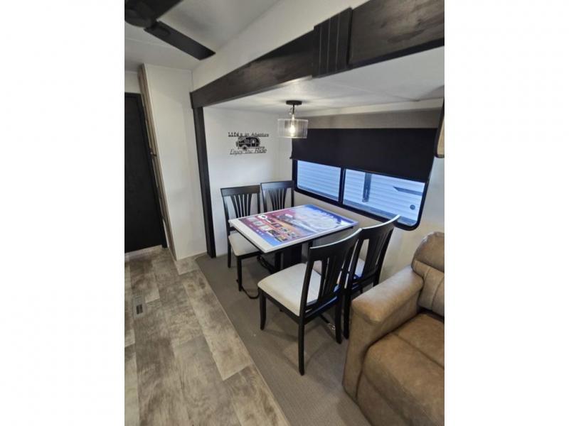 This destination trailer will probably be in the family for years to come with all of its features and amenities such as the rear private bunkhouse with a half bath attached, the dual entry doors for a smooth flow of traffic, and the spacious bedroom with a slide out king-size bed. There is even a closet with the option to add washer and dryer prep. The bunkhouse includes a slide out bunk with a jiffy sofa below, a slide out set of bunks, plus an entertainment center in between two wardrobes. The main living and kitchen area offers full amenities, a U-shaped dinette to dine at, and a sofa to relax on. You even have an optional outside kitchen to cook meals in the great outdoors!
