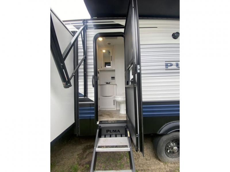 Each Puma Destination trailer by Palomino is designed to give you unforgettable getaways to the destination of your choice! The Value Shopper Package features Congoleum linoleum, LED lighting, an AM/FM/Bluetooth stereo, and an upgraded kitchen faucet to name a few comforts. Two exterior speakers are included with the required Marquis Edition, along with solid surface countertops, night roller shades, an outside shower, and four stabilizer jacks to help keep your unit secure. You will also appreciate the roof and side mount solar prep for off-grid capabilities, as well as WiFi prep if you need the option to work while you're away from home!