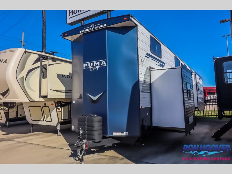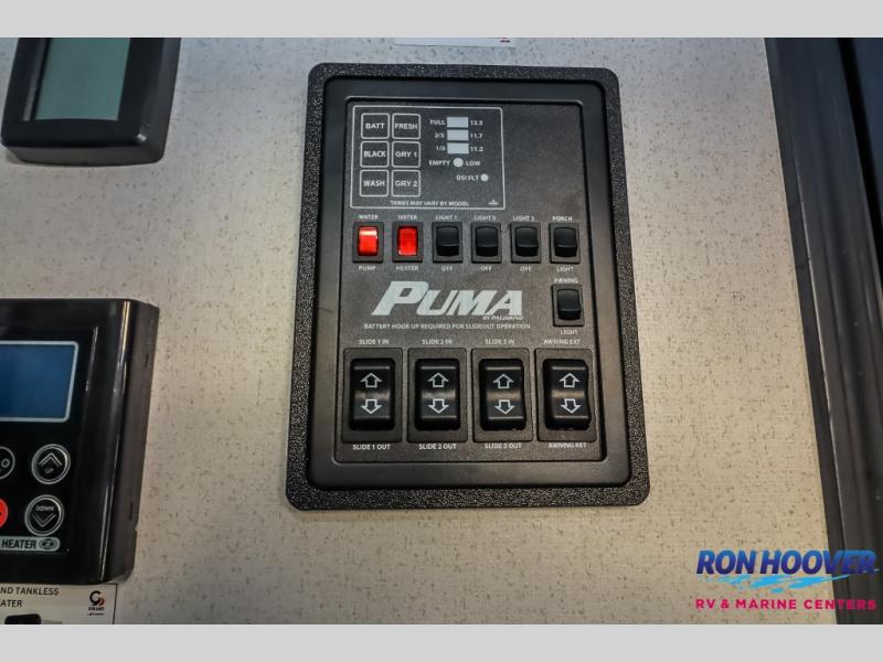 Each Puma Destination trailer by Palomino is designed to give you unforgettable getaways to the destination of your choice! The required Value Shopper Loft Package includes Congoleum designer linoleum, night roller shades, LED lighting, and a 24" stainless steel oven with a four burner stove so you can make meals just like you would at home. The tankless water heater is another feature you won't want to camp without, and there is WiFi prep, solar prep, plus optional washer and dryer prep for the option to further customize your trailer. An outside shower is included with the required Loft Package, along with two exterior speakers, solid surface countertops, four stabilizer jacks, and more!