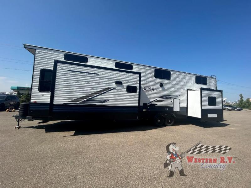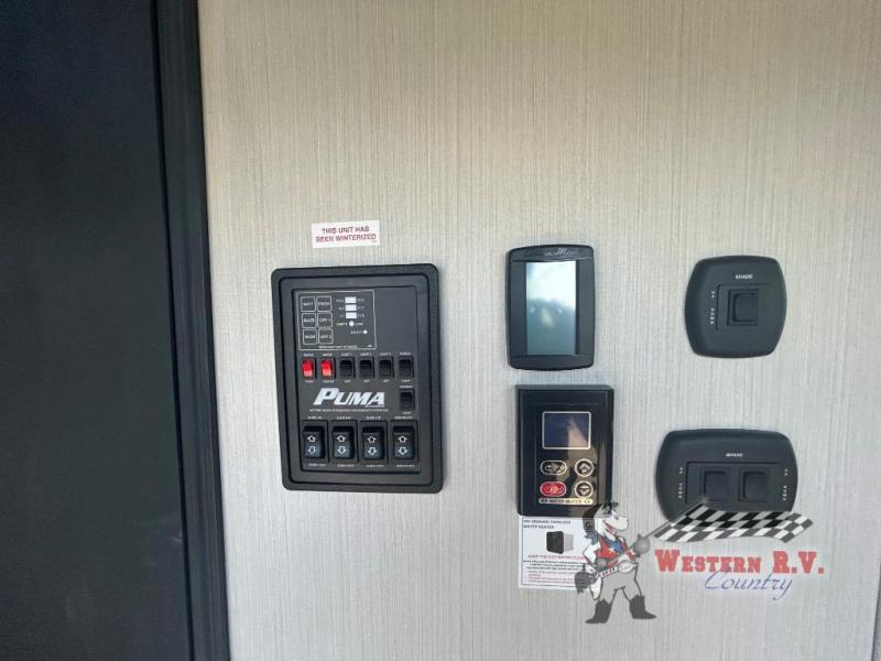 Each Puma Destination trailer by Palomino is designed to give you unforgettable getaways to the destination of your choice! The required Value Shopper Loft Package includes Congoleum designer linoleum, night roller shades, LED lighting, and a 24" stainless steel oven with a four burner stove so you can make meals just like you would at home. The tankless water heater is another feature you won't want to camp without, and there is WiFi prep, solar prep, plus optional washer and dryer prep for the option to further customize your trailer. An outside shower is included with the required Loft Package, along with two exterior speakers, solid surface countertops, four stabilizer jacks, and more!