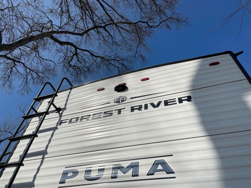 Each Puma Destination trailer by Palomino is designed to give you unforgettable getaways to the destination of your choice! The required Value Shopper Loft Package includes Congoleum designer linoleum, night roller shades, LED lighting, and a 24" stainless steel oven with a four burner stove so you can make meals just like you would at home. The tankless water heater is another feature you won't want to camp without, and there is WiFi prep, solar prep, plus optional washer and dryer prep for the option to further customize your trailer. An outside shower is included with the required Loft Package, along with two exterior speakers, solid surface countertops, four stabilizer jacks, and more!