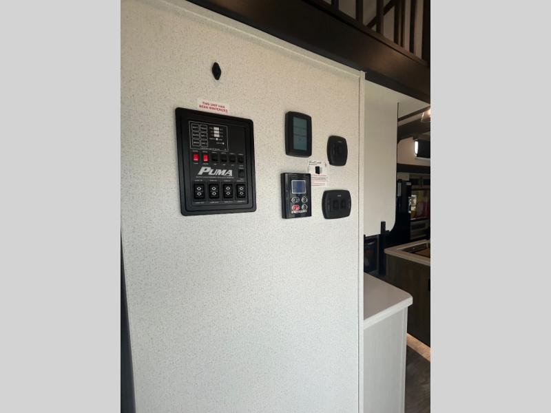 Each Puma Destination trailer by Palomino is designed to give you unforgettable getaways to the destination of your choice! The required Value Shopper Loft Package includes Congoleum designer linoleum, night roller shades, LED lighting, and a 24" stainless steel oven with a four burner stove so you can make meals just like you would at home. The tankless water heater is another feature you won't want to camp without, and there is WiFi prep, solar prep, plus optional washer and dryer prep for the option to further customize your trailer. An outside shower is included with the required Loft Package, along with two exterior speakers, solid surface countertops, four stabilizer jacks, and more!
