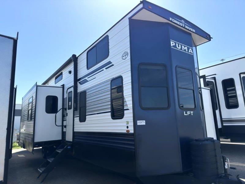 Each Puma Destination trailer by Palomino is designed to give you unforgettable getaways to the destination of your choice! The required Value Shopper Loft Package includes Congoleum designer linoleum, night roller shades, LED lighting, and a 24" stainless steel oven with a four burner stove so you can make meals just like you would at home. The tankless water heater is another feature you won't want to camp without, and there is WiFi prep, solar prep, plus optional washer and dryer prep for the option to further customize your trailer. An outside shower is included with the required Loft Package, along with two exterior speakers, solid surface countertops, four stabilizer jacks, and more!