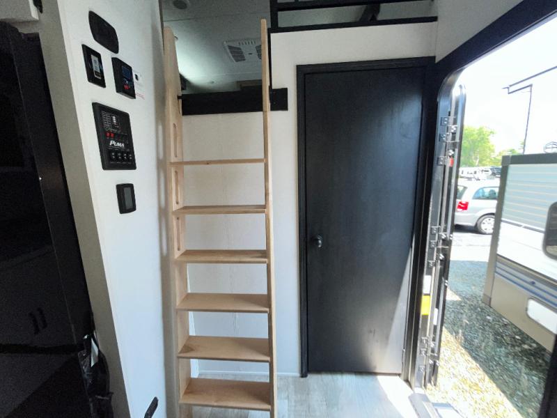 Each Puma Destination trailer by Palomino is designed to give you unforgettable getaways to the destination of your choice! The required Value Shopper Loft Package includes Congoleum designer linoleum, night roller shades, LED lighting, and a 24" stainless steel oven with a four burner stove so you can make meals just like you would at home. The tankless water heater is another feature you won't want to camp without, and there is WiFi prep, solar prep, plus optional washer and dryer prep for the option to further customize your trailer. An outside shower is included with the required Loft Package, along with two exterior speakers, solid surface countertops, four stabilizer jacks, and more!